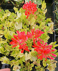 One of the most prettiest categories in the Pelargonium range. Fancy leaf geraniums are not only very are easy to grow, they perform well and look stunning with their decorative leaves. Many also have pretty flowers too so a double benefit to growing these attractive plants. They make excellent ground cover and are often used in parks and gardens for most of them are quick growing and are highly attractive even when not in flower! Incredibly popular because they make such superb display plants, some have won awards on the show bench. Why not plant in a group to create a stunning impact display. But remember ALL pelargoniums require frost protection if you wish to keep them year on year.